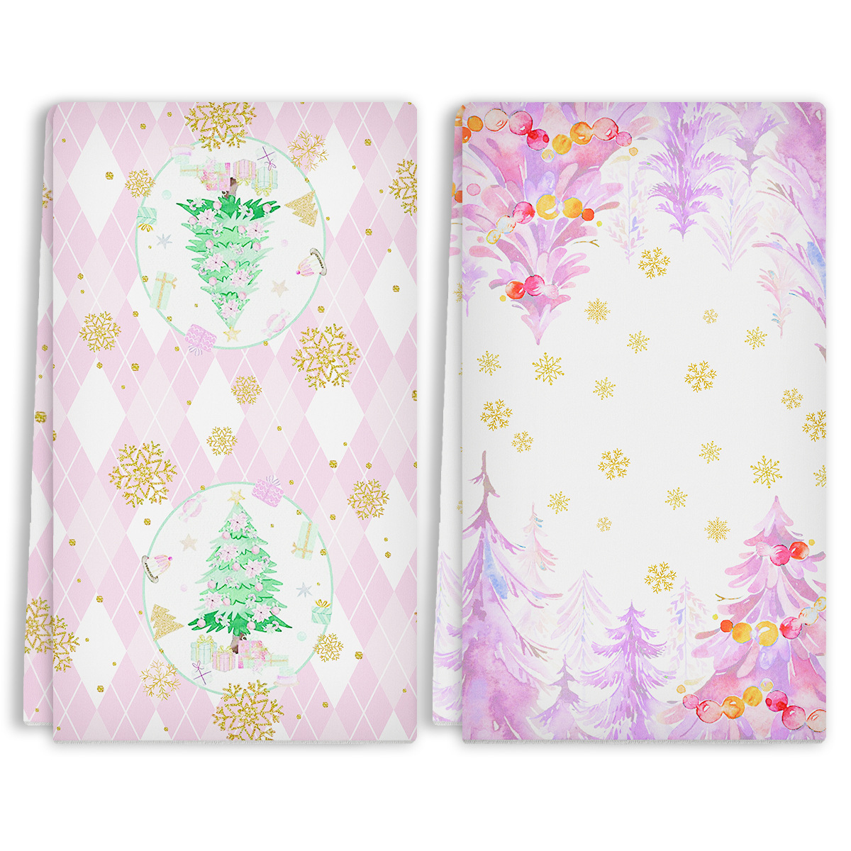 クロスボーダークリスマスキッチンディッシュタオルキッチンクリーニングタオルクリスマスツリー漫画花装飾タオル