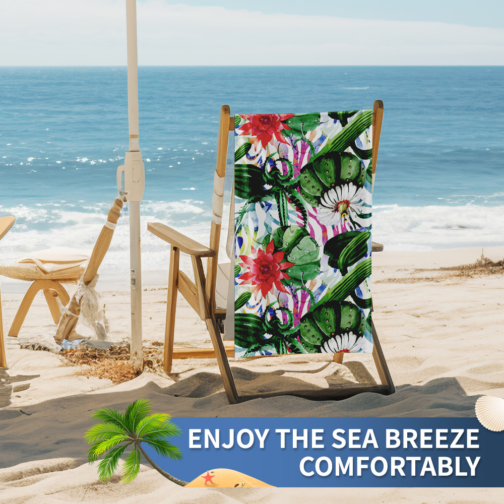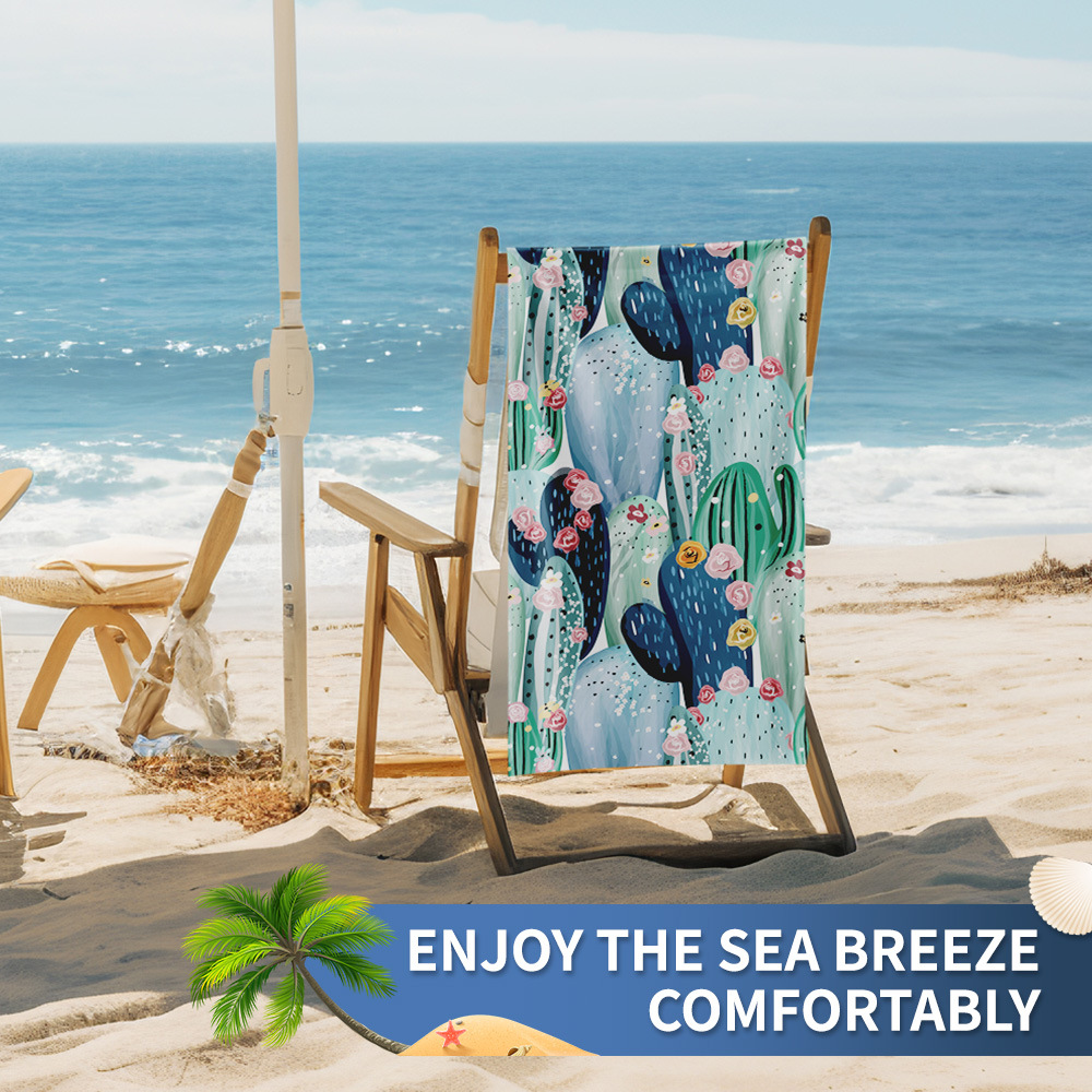 在庫あり、クロスボーダー配送対応、サボテン柄ビーチタオル、OEM・ODMカスタム、速乾キャンプタオル、吸水性バスタオル