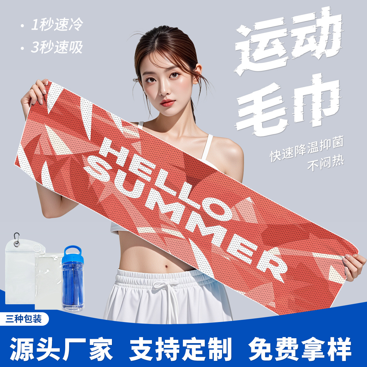 【小売ホットモデル】Tmallの再購入率が高く、若者向けのトレンディな速乾性冷却タオル、冷却用スポーツタオル