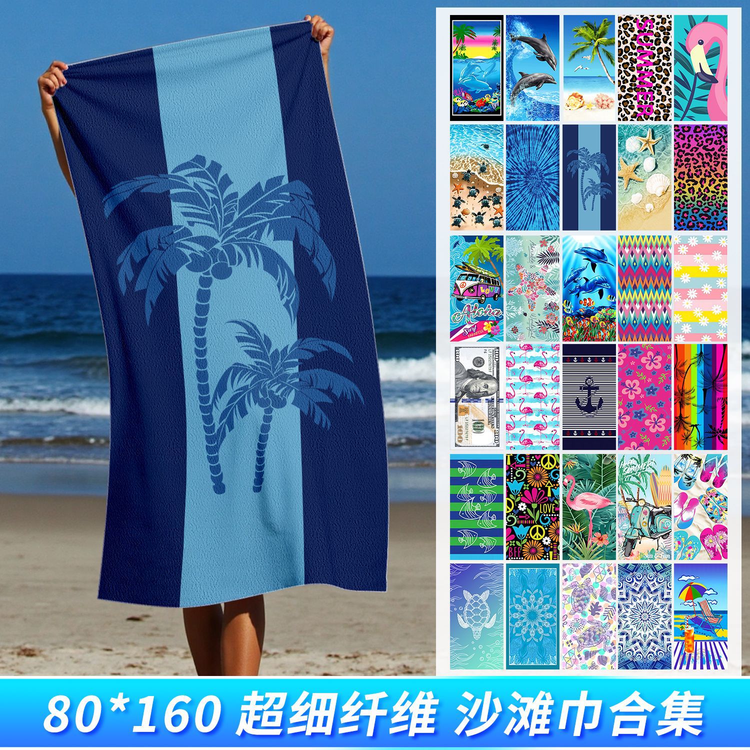 【80*160ビーチタオル既製品コレクション】クロスボーダーマイクロファイバービーチタオルはカスタマイズ可能な吸水性ビーチタオルです