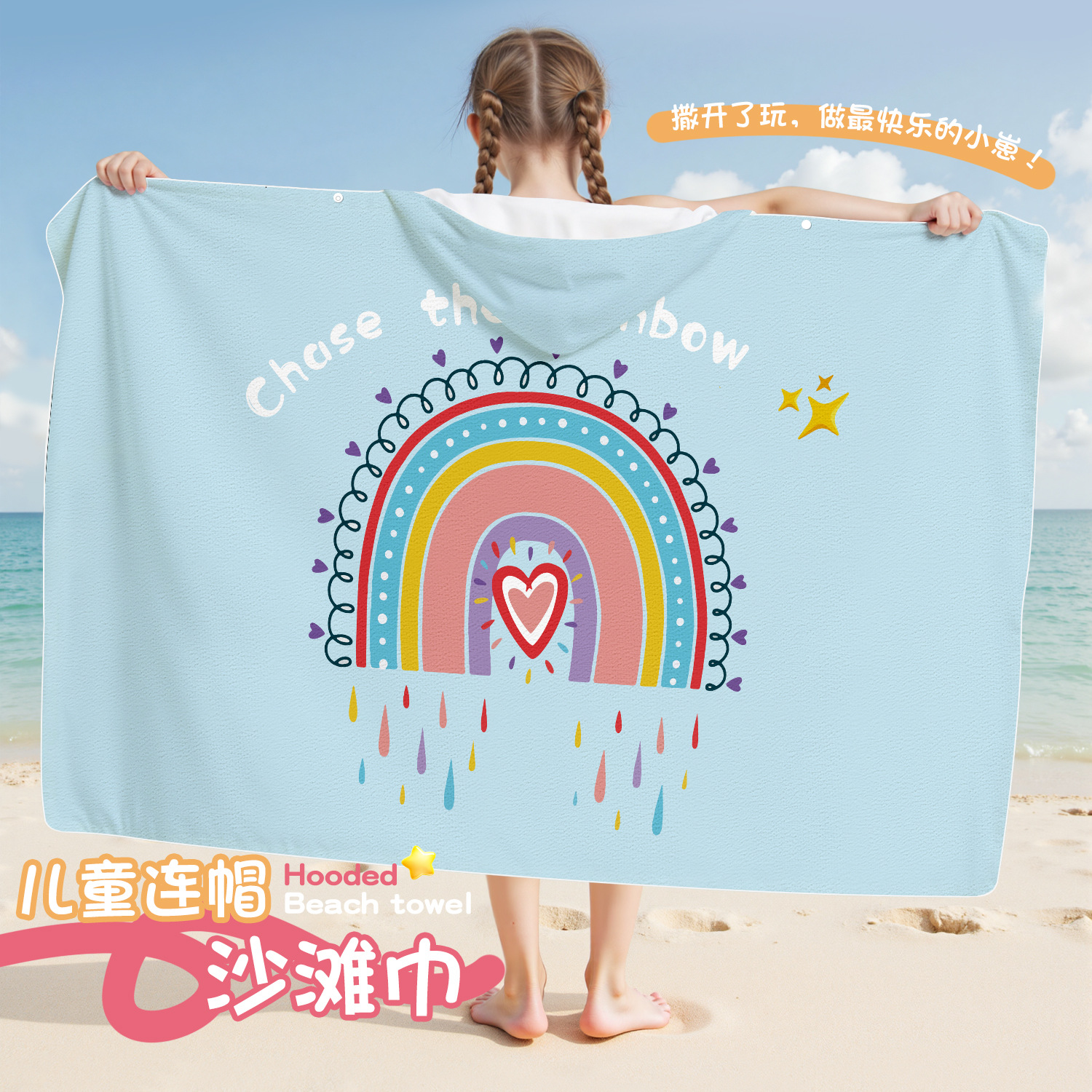 【プール滑り止め】クロスボーダー両面ベルベットバックル速乾バスタオルカスタマイズ子供用フード付きマント水泳トレーニングタオル
