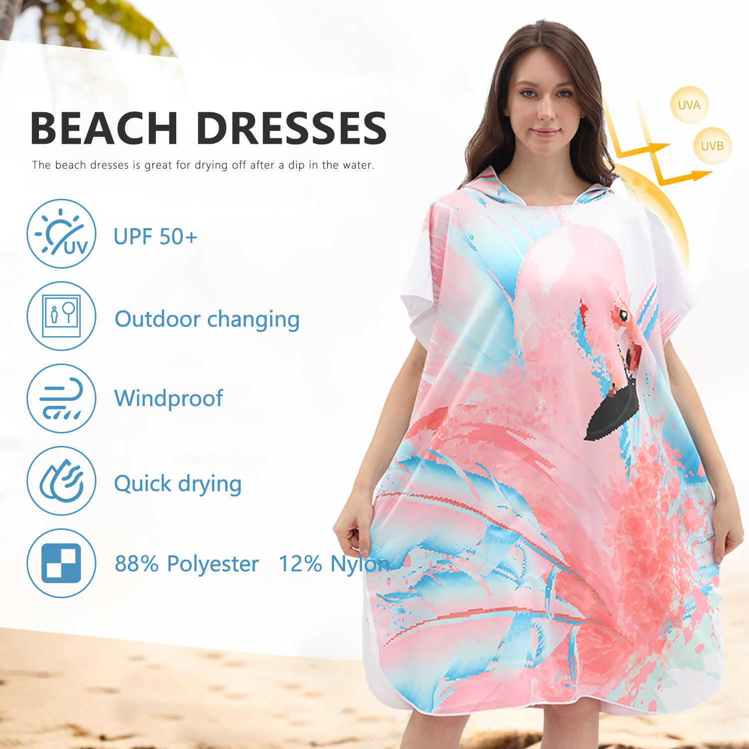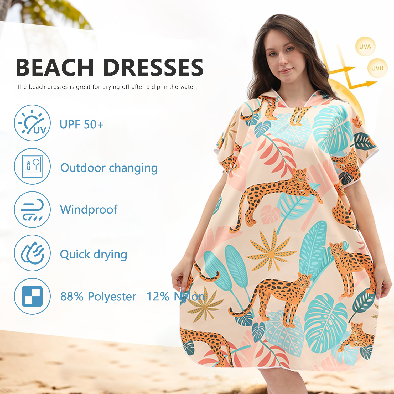 アマゾンクロスボーダー卸売速乾ビーチタオル着替えバスローブフード付きバスタオルマント両面パイル日焼け止めストール女性