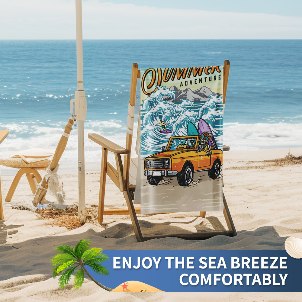 トラックビーチタオル夏の新型極細繊維プリントバスタオル水泳屋外速乾性タオル日焼け止めストール
