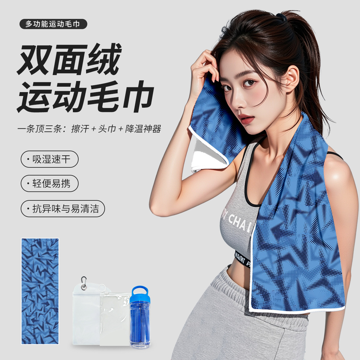【サイクリング・フィットネス用品】速乾タオル 両面ベルベット 吸汗スポーツタオル アウトドア ポータブル ホルターネック