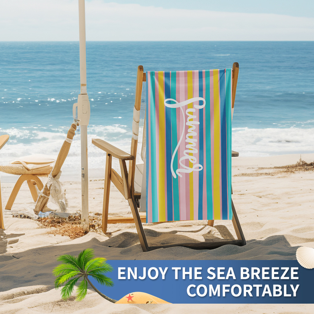 メーカー直販現物クロスボーダーアマゾン熱売プリント縞模様極細繊維吸水速乾ビーチタオル
