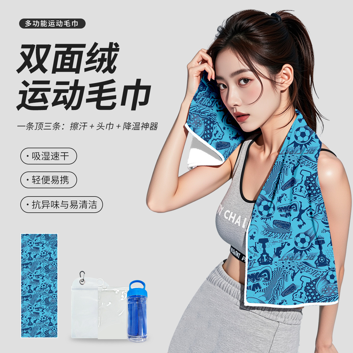 【サッカー速乾タオル】汗を吸収する両面ベルベットスポーツタオル ジムヨガランニング汗拭きタオル カスタマイズ可能