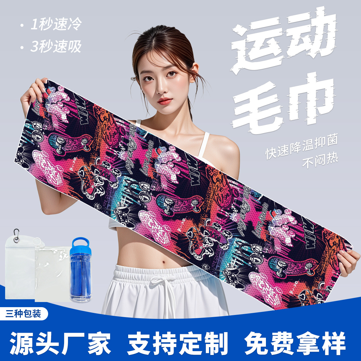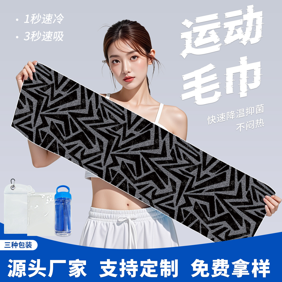 【超高速配送】再購入率の高い天猫と同じスタイルのブラックテクノロジーアイスシルクスポーツ速乾タオルカスタマイズ