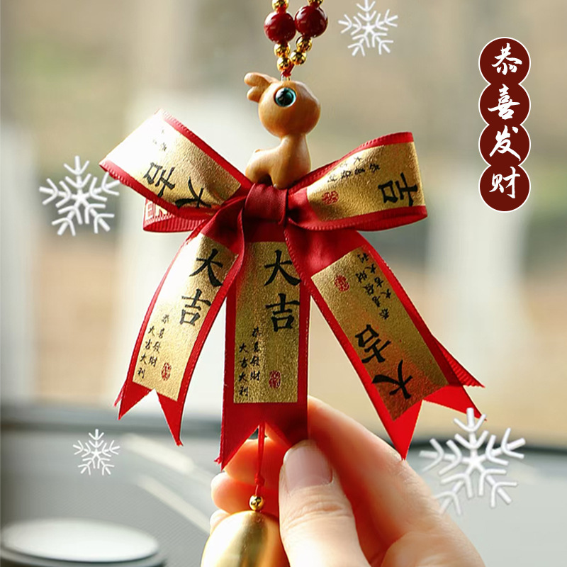 新年大吉自動車ストラップ中国風車用装飾バックミラーペンダント創意平安鹿車載ペンダント