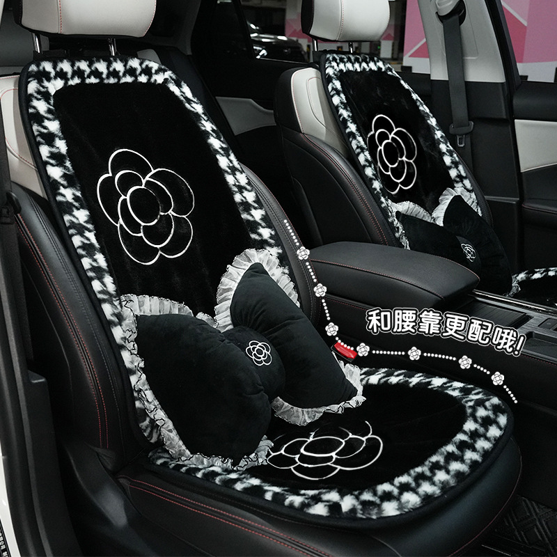 カーシートクッション冬長毛シンプルな車暖かい滑り止めシートクッションファッション女神ユニバーサルカーシートカバー
