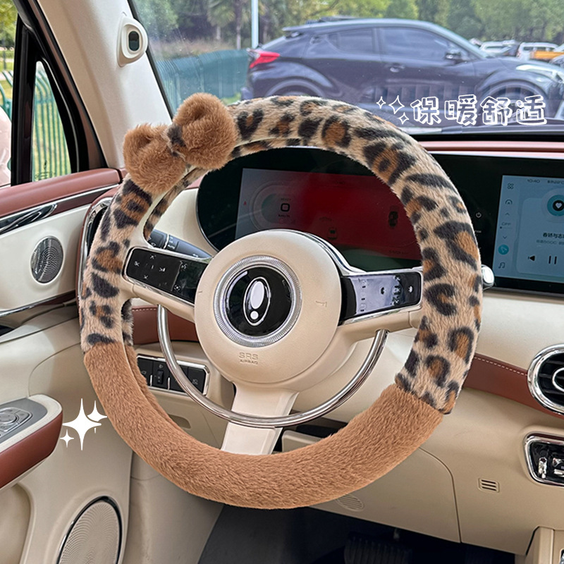 豹柄の車のハンドルカバー、ふわふわで暖かい車のハンドルカバー、冬の新商品、凍結防止車のハンドルカバー