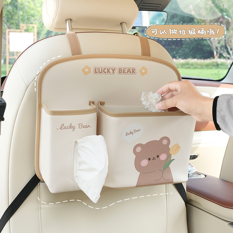 カーシートバック収納袋レザープリントカートゥーン車内置物ポケットクリエイティブ多機能車載収納