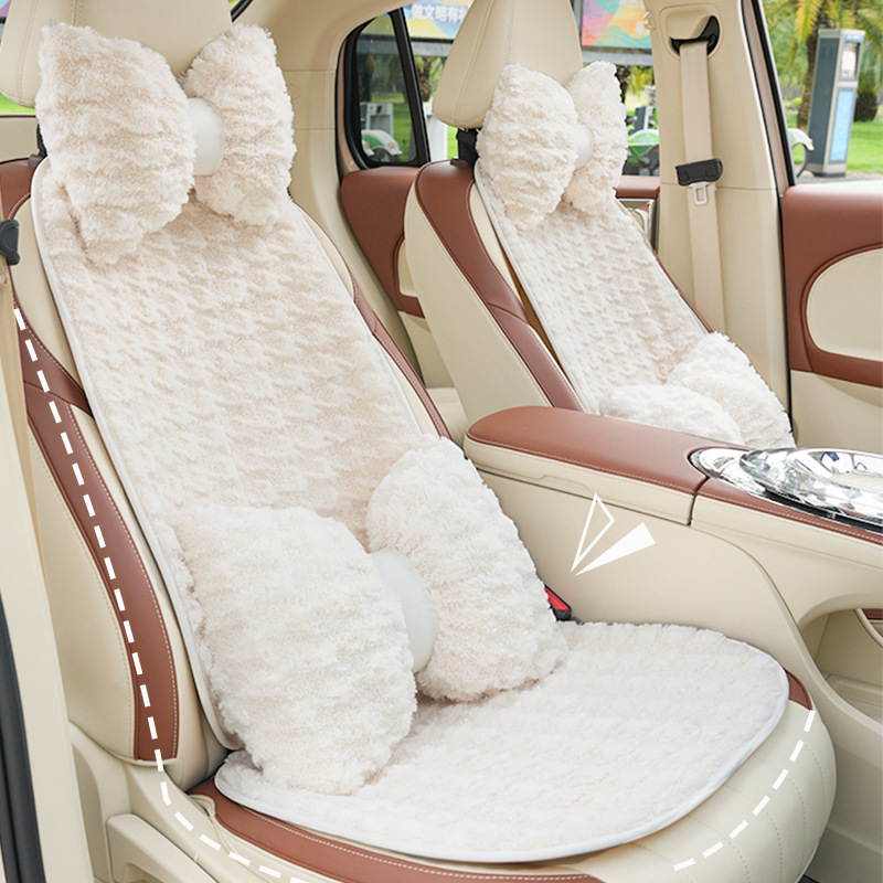 自動車クッション冬のかわいいアニメ車用快適保温シートクッションのアイデアはウサギの毛の車載シートの女性に似せている