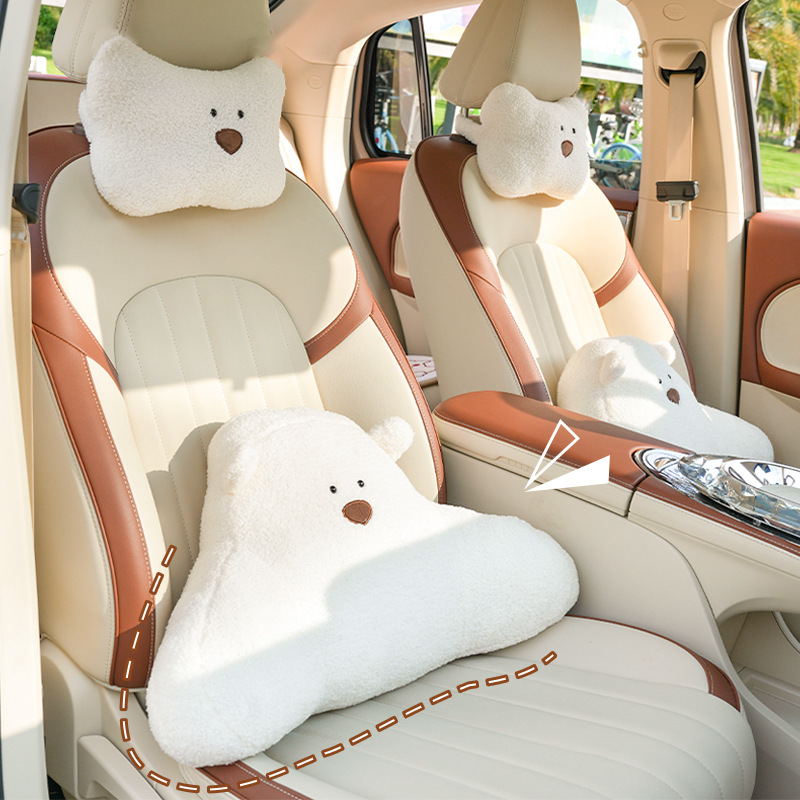 車のヘッドレストの羊の小毛のかわいい腕の熊車用の快適なシートの枕のネットの赤い四季の通用の自動車の腰は寄りかかります。