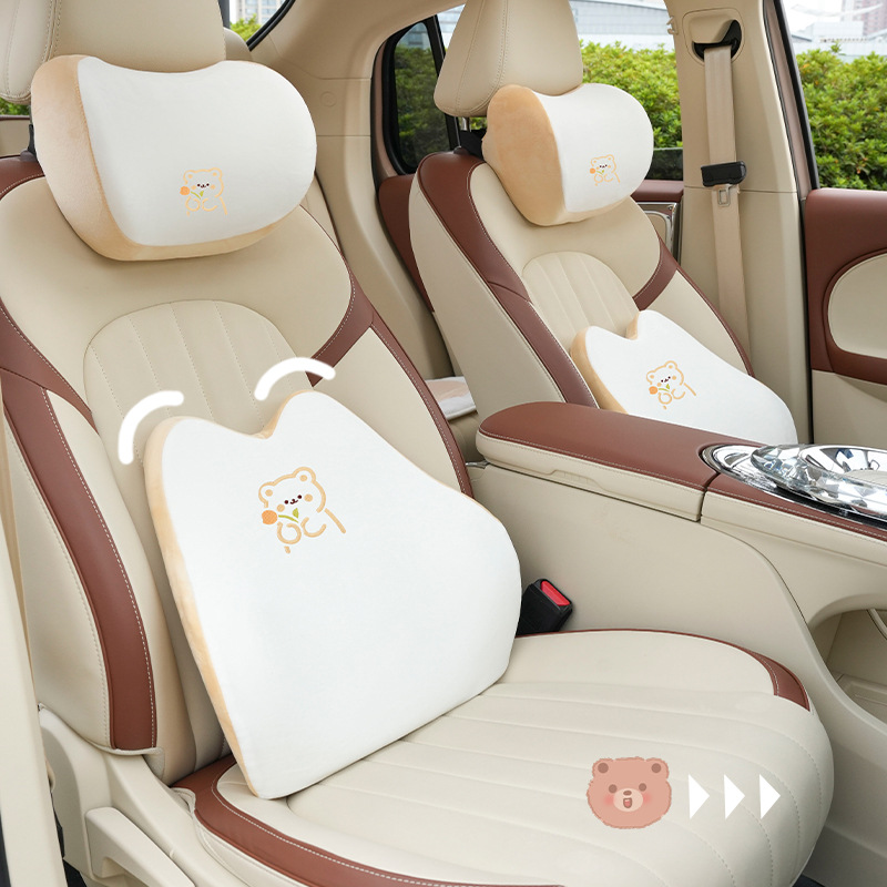 車のヘッドレストのかわいいチューリップの熊の車内の記憶綿の首の枕を保護します。
