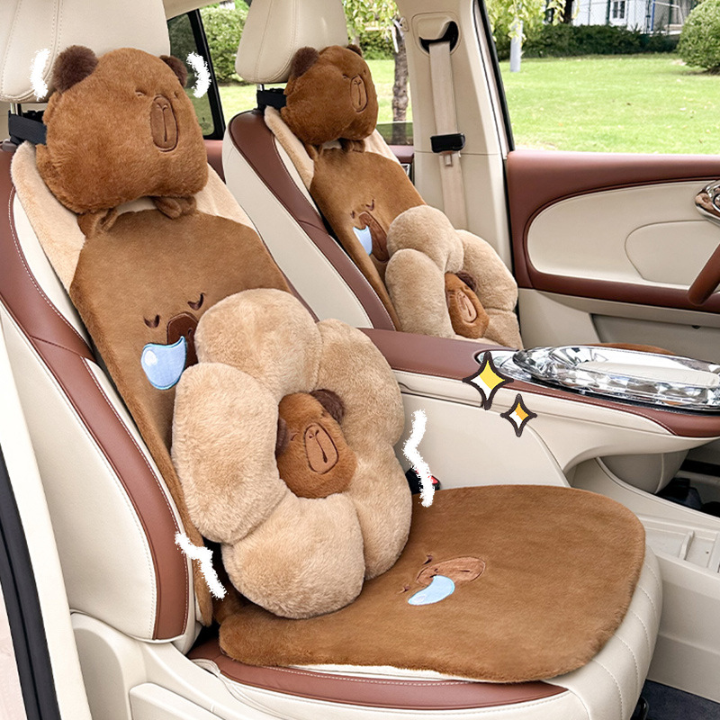 漫画の車のクッションのアイデアのカピバラ車用の滑り止めの椅子のカバーの高級感の冬の保温の車のクッション