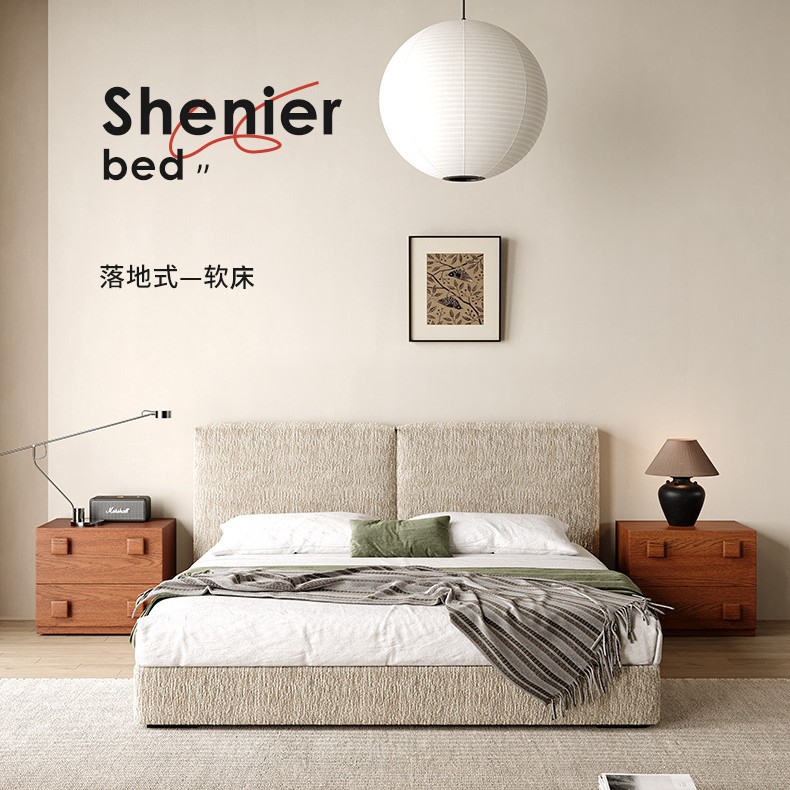 泡芙床クリーム復古風主臥軽贅沢高級雪尼爾布床意式極簡軟包収納ベッド