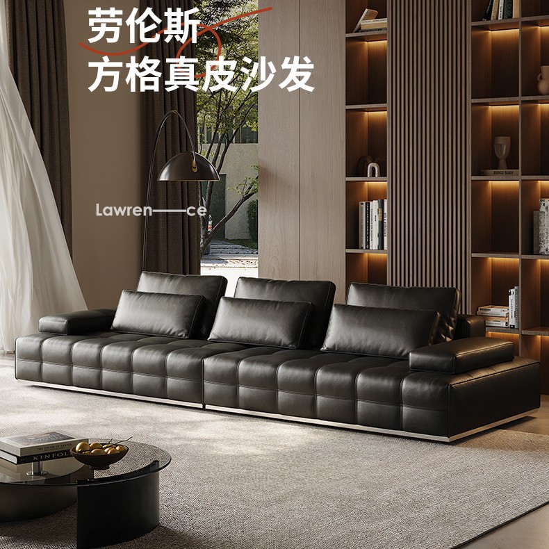 ローレンスレザーソファリビングルーム2025新しいライト高級第一層牛革イタリアのミニマリストレザーソファ