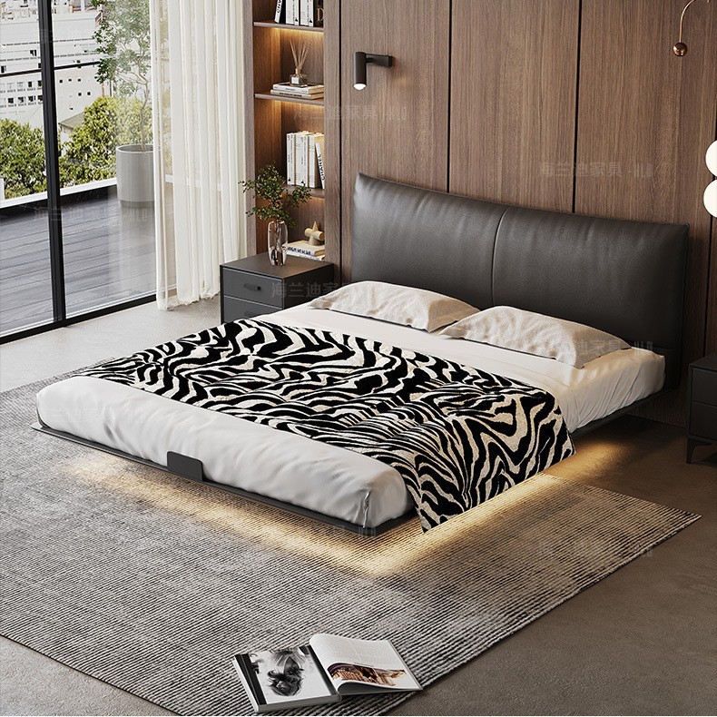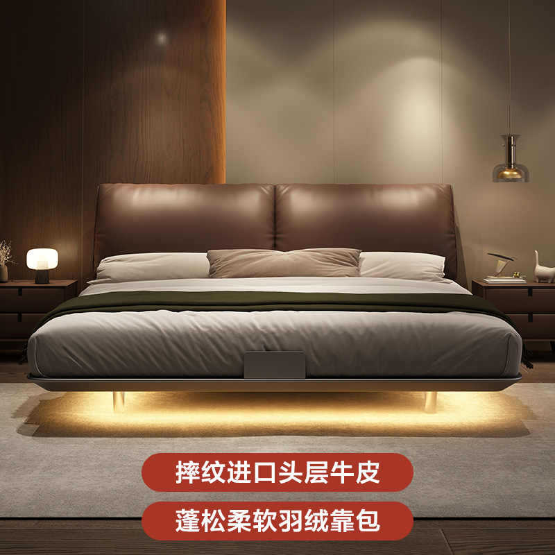 炭素鋼懸濁ベッドの薄いベッドの主寝ベッドのイタリア式の極めて簡単なベッドのフレームの2025新型のハイエンドの大気の本物の皮のベッド