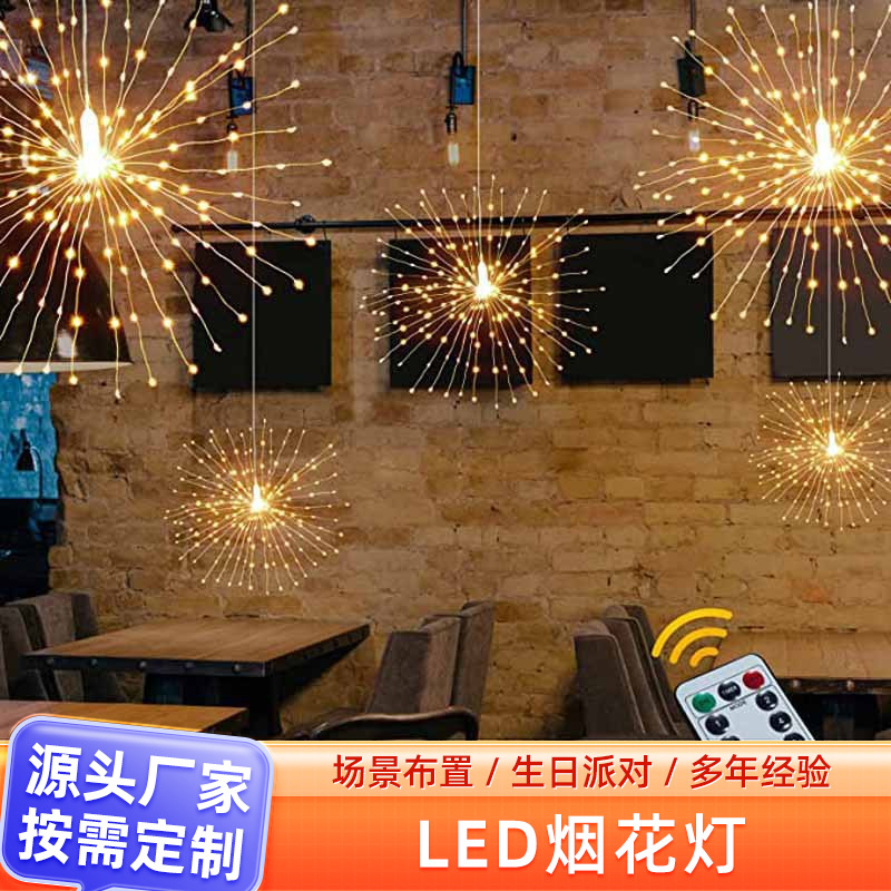 国境を越えた新型太陽エネルギーリモコン吊り式花火灯LED屋外防水点灯工事祝日装飾灯列