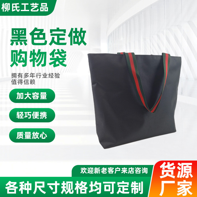 ファッションシンプルオックスフォード布ショッピングバッグブラック大容量衣料品店布袋ショッピングギフト車縫い手提げ袋