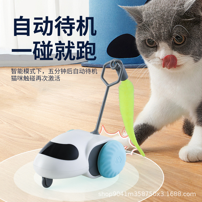 クロスボーダーの新型スポーツカーは猫の怠け者のペットの猫のおもちゃをからかいます。