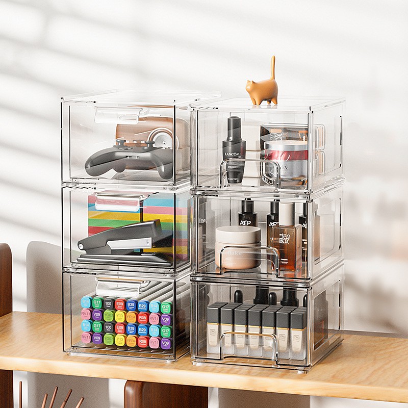 クロスボーダー透明収納ボックスデスクトップ引き出し型化粧品収納ボックス学生文具雑貨引き出し収納ボックス