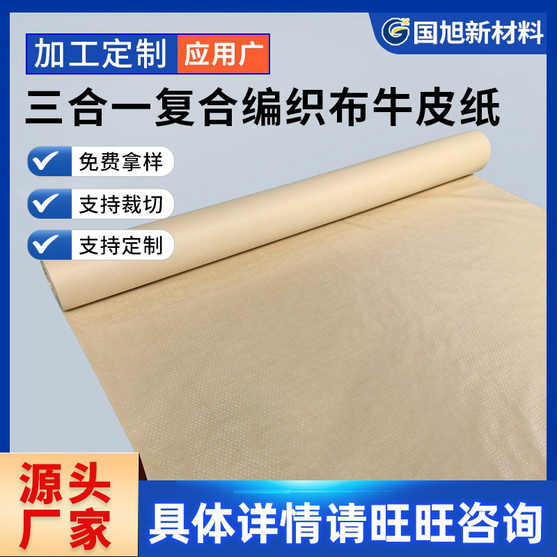 スリーインワン複合織布クラフト紙pe織布クラフト紙両面織布複合クラフト紙