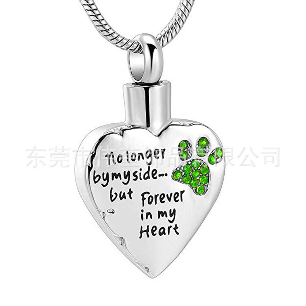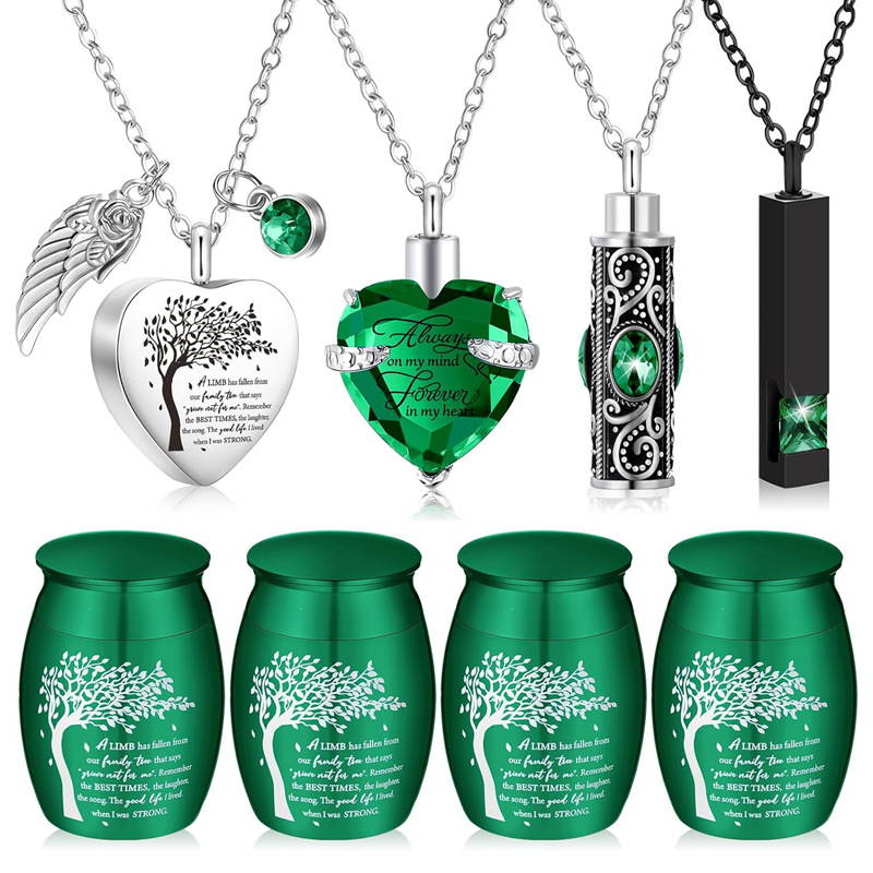 新しいホット販売ステンレス鋼誕生石遺骨ペンダントネックレス合金グリーン開閉可能な遺骨記念瓶