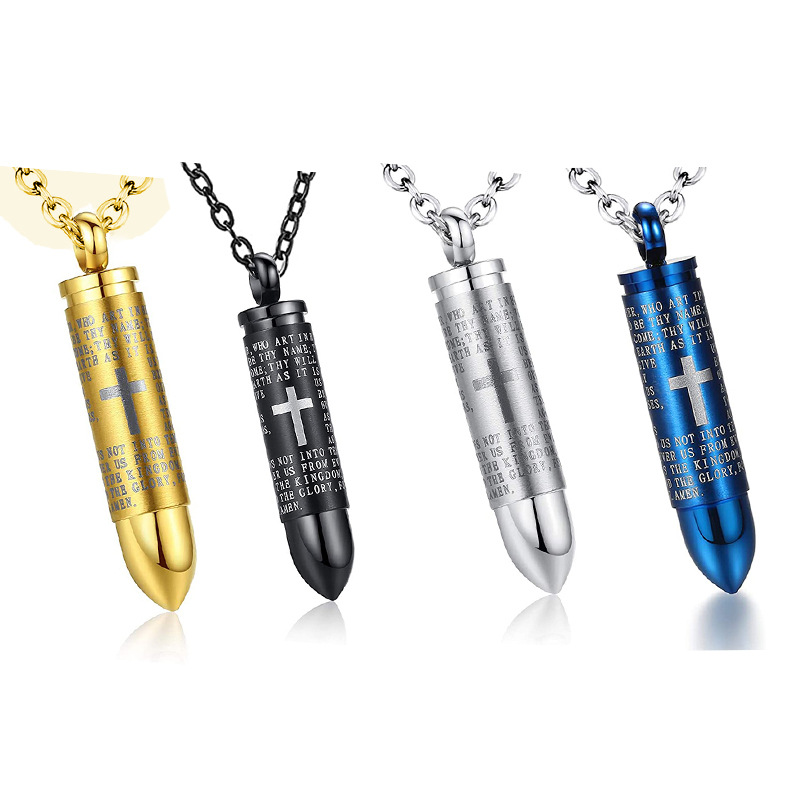 クロスボーダーのアクセサリー卸売り男女の個性的な骨灰箱のネックレスファッションの新型の十字の弾頭のペンダントのアクセサリー