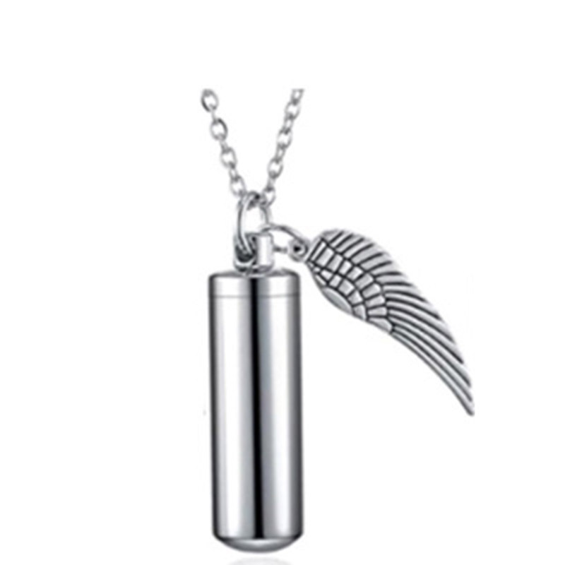 Wish記念肉親の遺骨毛髪チタン鋼銀色模様円柱骨灰箱ネックレス香水瓶ペンダント