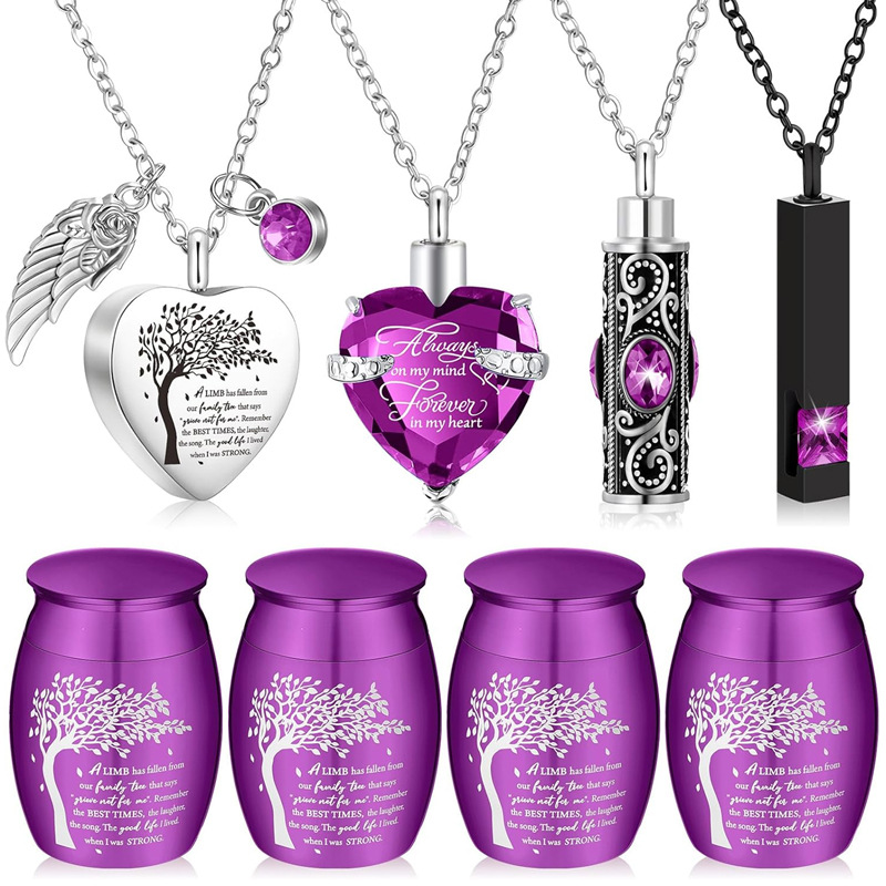 親やペットを記念するクロスボーダーチタン鋼円筒形骨壺ネックレスペンダント 40*30 ミリメートル紫色の骨壺