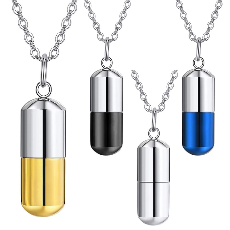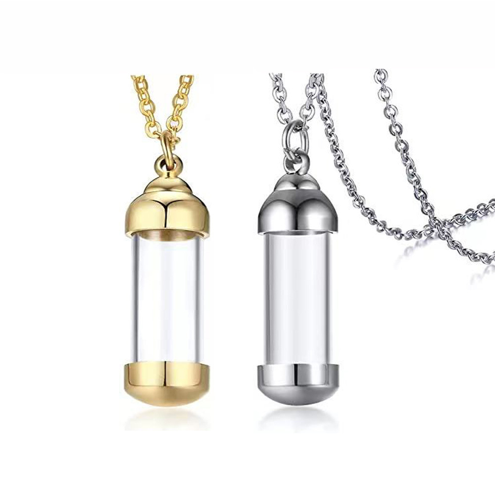国境を越えて人気の316Lステンレス製ペンダント遺灰ネックレス、ファッショナブルなアクセサリー、チタン鋼カプセル型ペンダント、配送チェーン付き