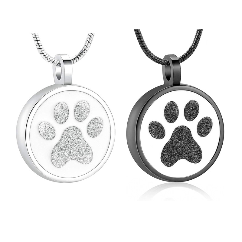 小さな骨付きの丸い犬の足ペットの骨壺ステンレス鋼ネックレスペンダント香水ボトルペンダント男性と女性のチタン鋼