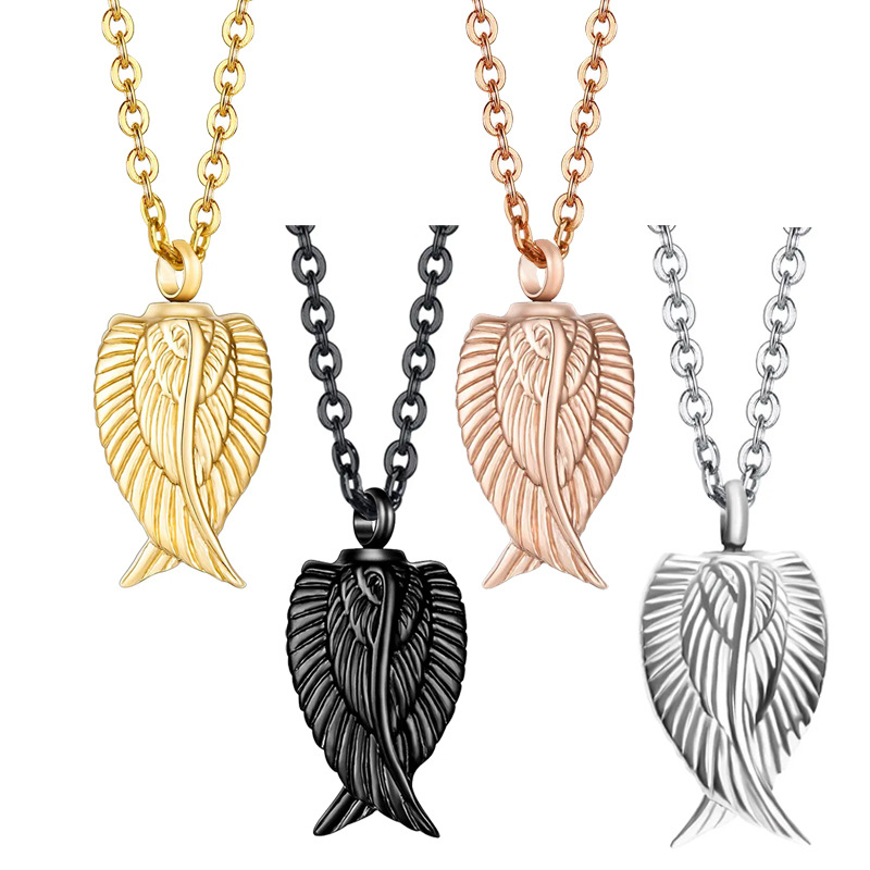 天使の翼のネックレスはステンレスのアクセサリーを開けてペットの家族を記念します。