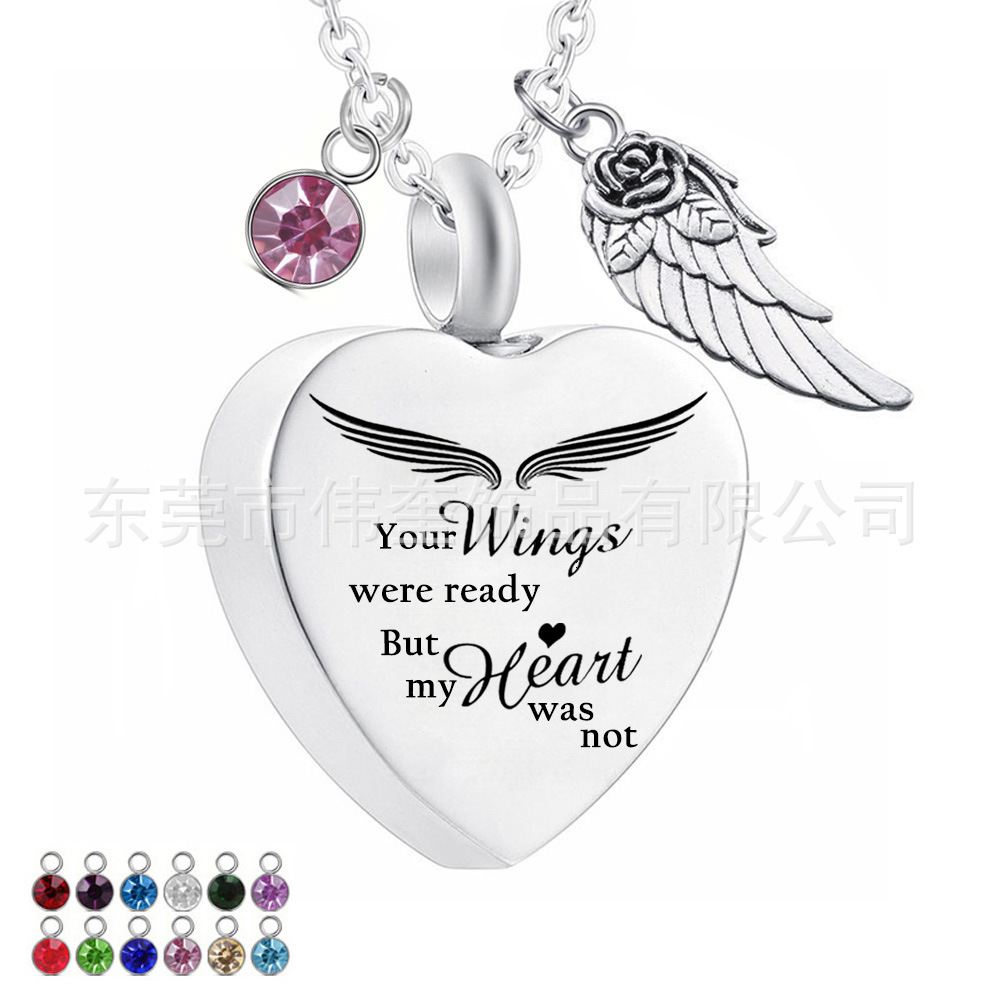 アマゾン热い贩売记念ペットの骨のネックレスハート型の翼の骨の箱の诞生日の石の翼のペンダントの饰り