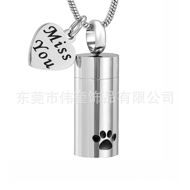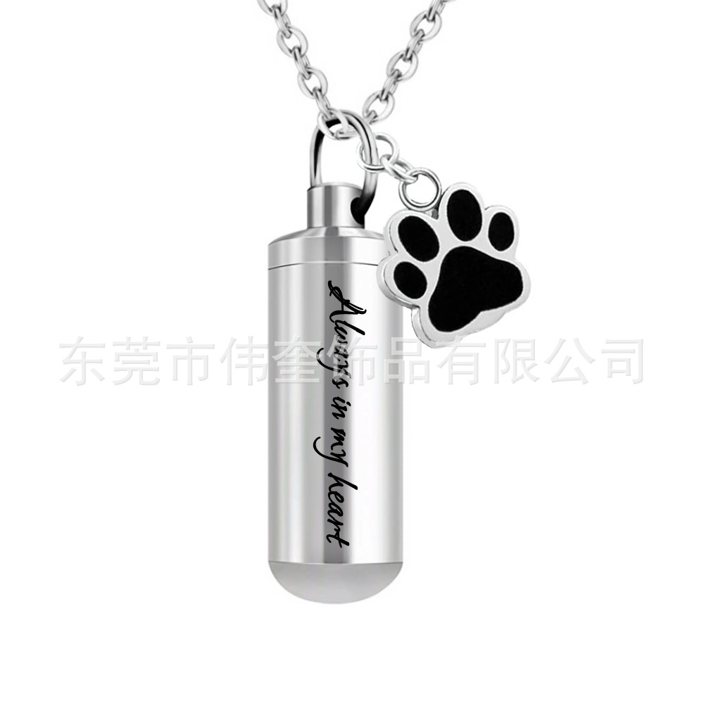 Wishシルバーステンレス円柱彫刻記念骨灰箱ペンダント骨灰缶alway in my heart