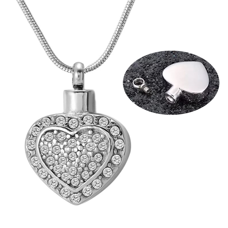 チタン鋼ハート型香水瓶ペンダント男性と女性のネックレス愛ダイヤモンド付き骨壺ネックレス親戚の遺物お土産