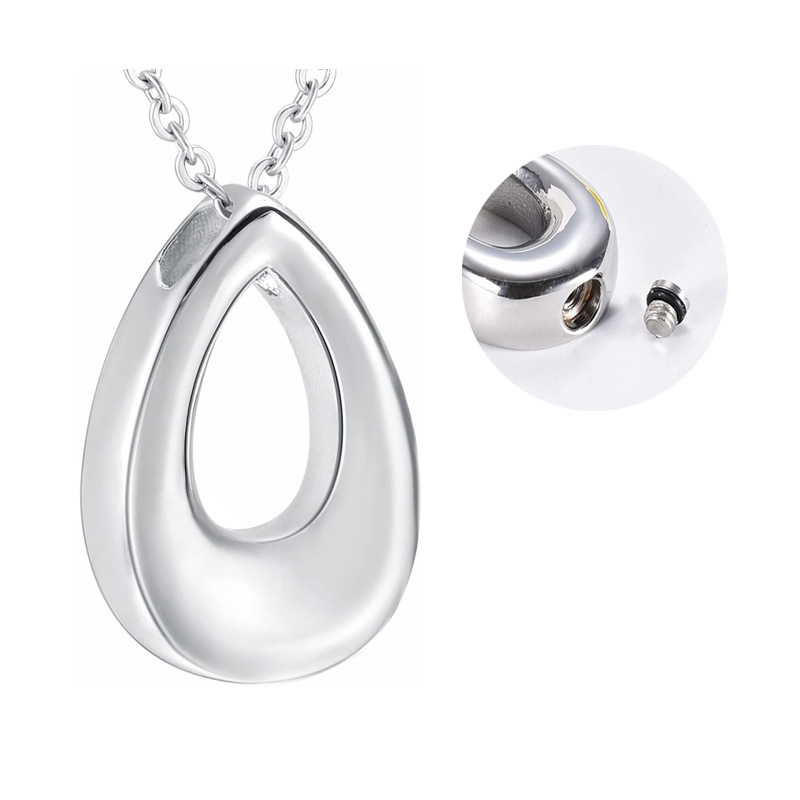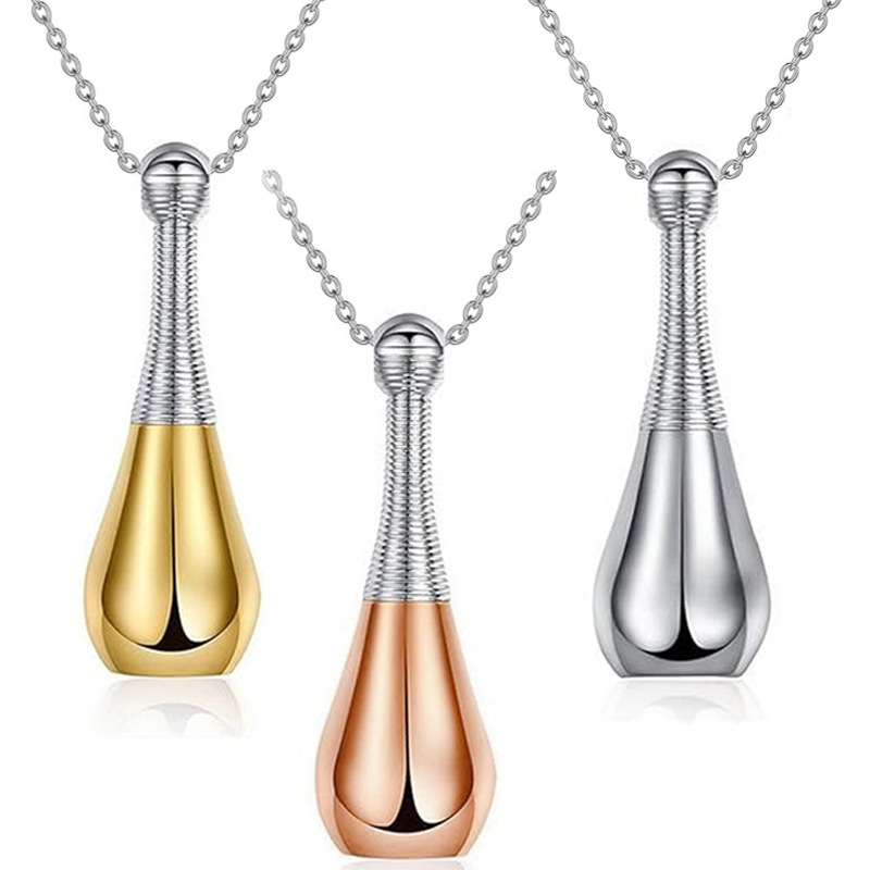 ヨーロッパとアメリカで売れ筋のステンレス製ドロップ型開閉式香水ボトルネックレスペット遺骨箱メモリアルペンダント