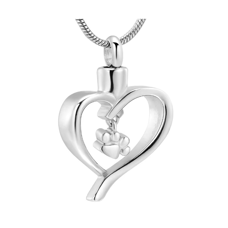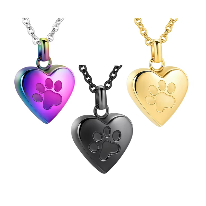 Amazonの人気商品ステンレススチール製のハート型ペンダントは、ペットの猫や犬の遺灰を記念するネックレスで、彫刻を施すこともできます。