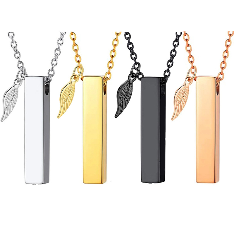 欧米の人気ステンレスの天使の翼の四角い柱の納骨のネックレスの底は家族の納骨のペンダントを記念することができます。