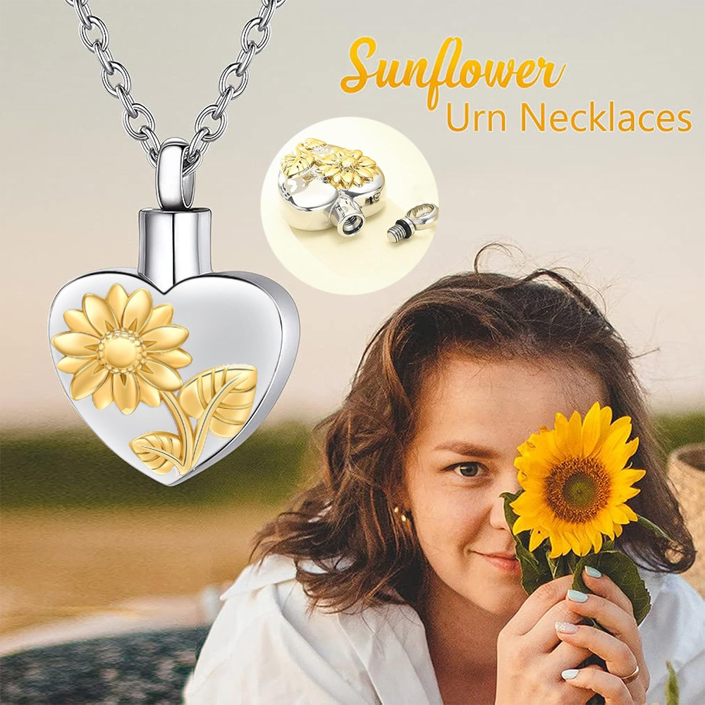 国境を越えた新型ハート型ヒマワリペット骨灰箱ペンダントファッション個性創意鎖骨ネックレスメーカー卸売り