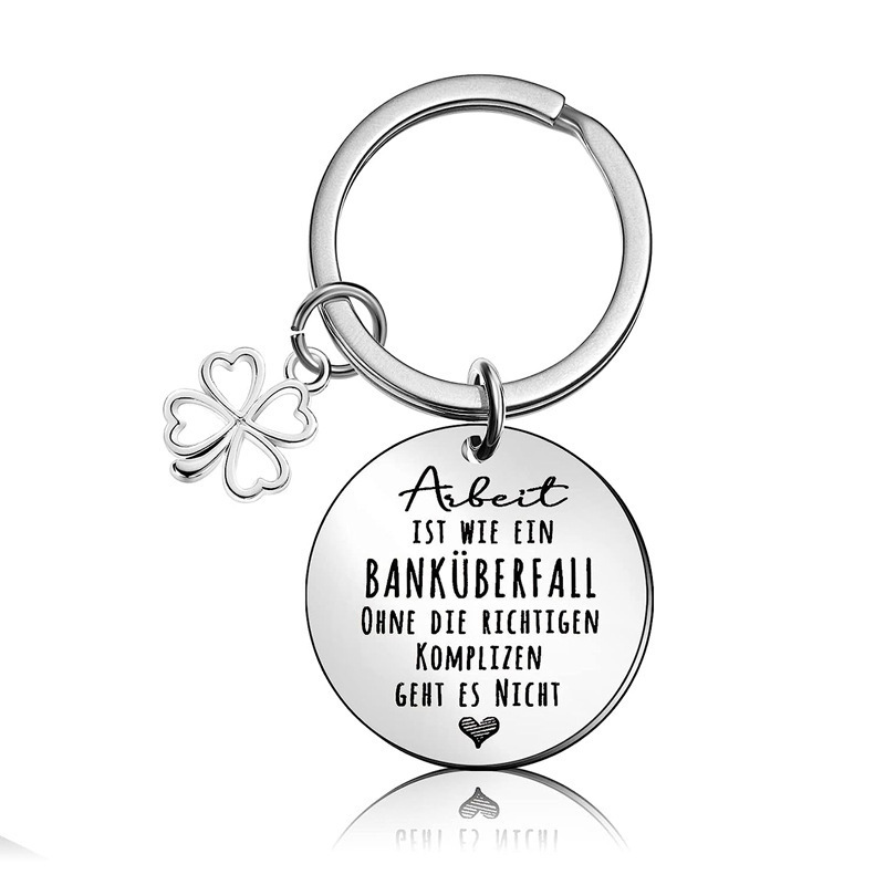 クロスボーダーの人気ステンレスのレタリングのキーホルダー四葉草のキーホルダーは友達の同僚に励ましの志をプレゼントします。