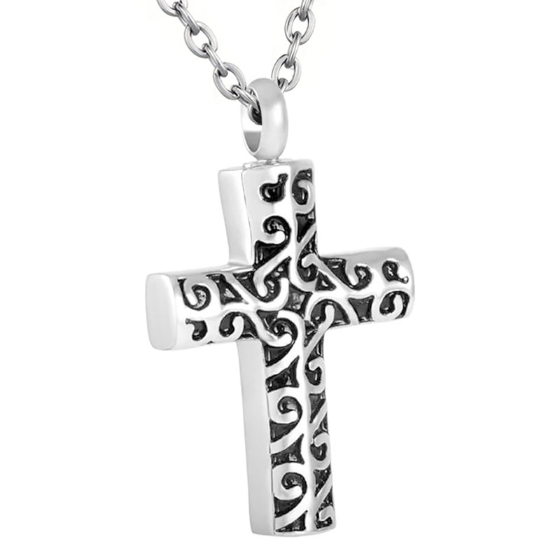 メーカー直販ステンレスレトロ模様クロス骨ペンダント記念家族ペット骨箱ネックレス