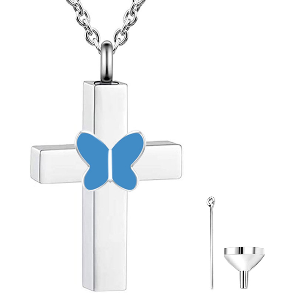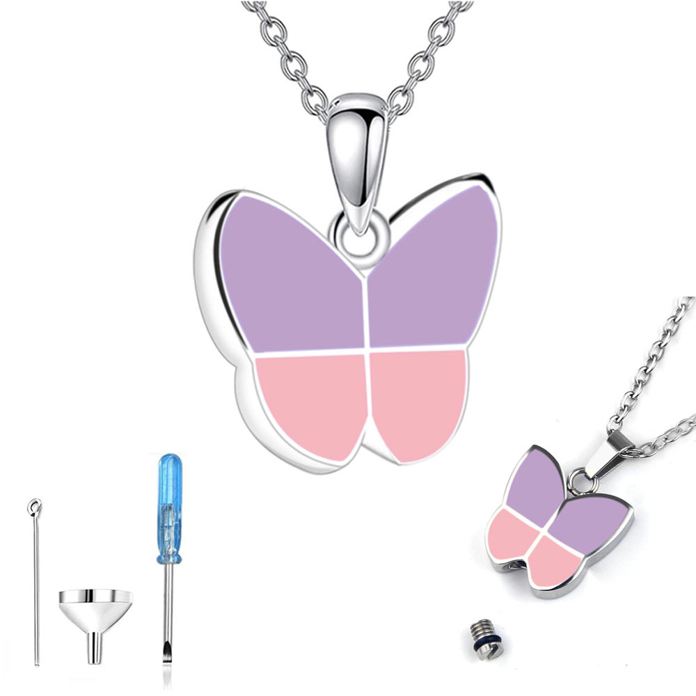 国境を越えた新型ステンレスカラー蝶骨灰箱ネックレス家族記念ペンダントファッションアクセサリースポット卸売り