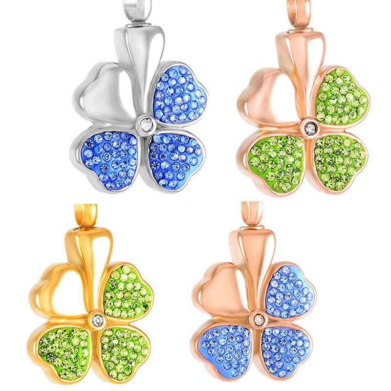 クロスボーダーの新型アクセサリーステンレス四葉草香薫精油ペンダントは骨灰箱のネックレスを開けることができる