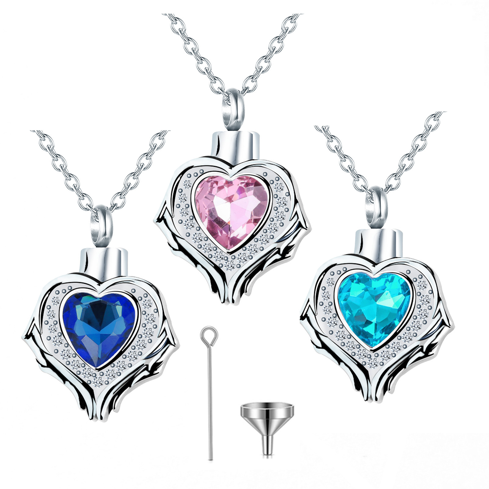 欧米のファッション天使の翼の愛のペンダントチタン鋼のハート型の骨の箱は家族のペットの骨のネックレスを記念します。