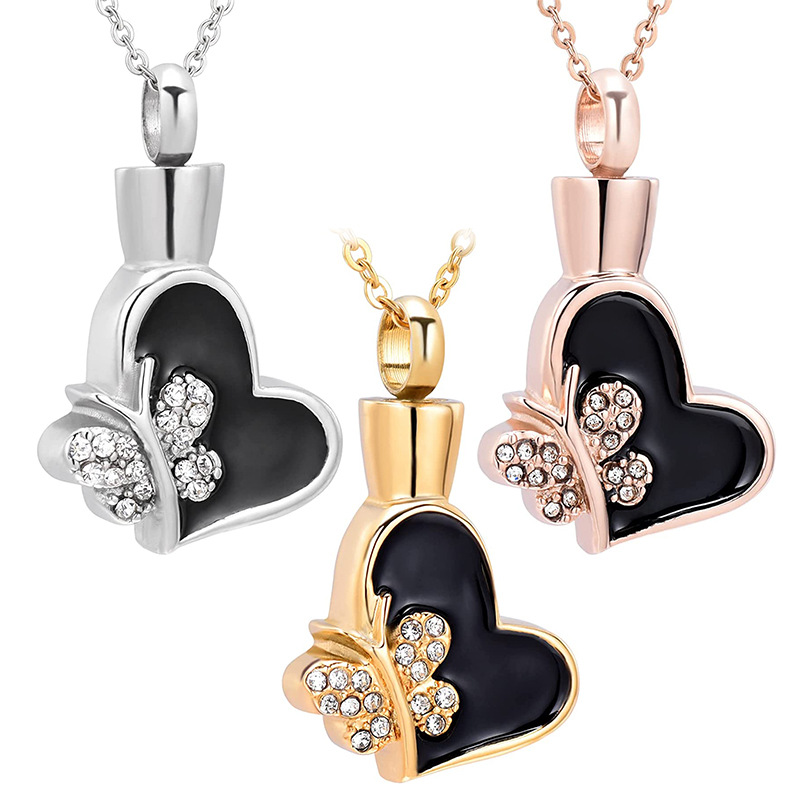 ステンレス骨灰箱家族ペット記念ペンダント蝶昆虫香水瓶男女チタン鋼ネックレス装着品