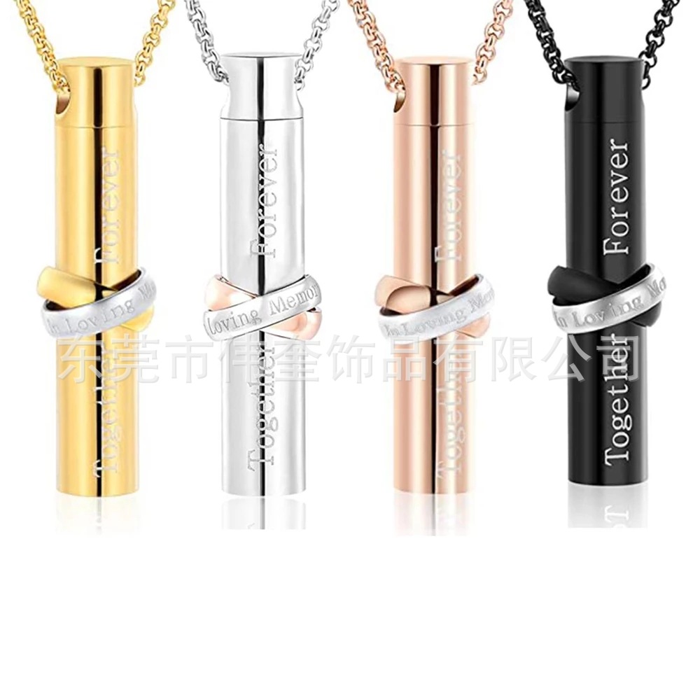 国境を越えたチタン鋼方形柱骨灰箱ネックレス記念家族ペット精油ペンダント香水瓶ペンダント骨灰缶