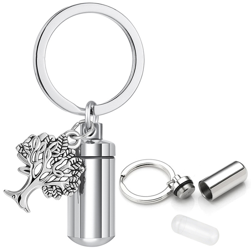 アマゾンの人気欧米記念ペットの骨灰箱ペンダントステンレス円柱生命樹香水瓶のキーホルダー