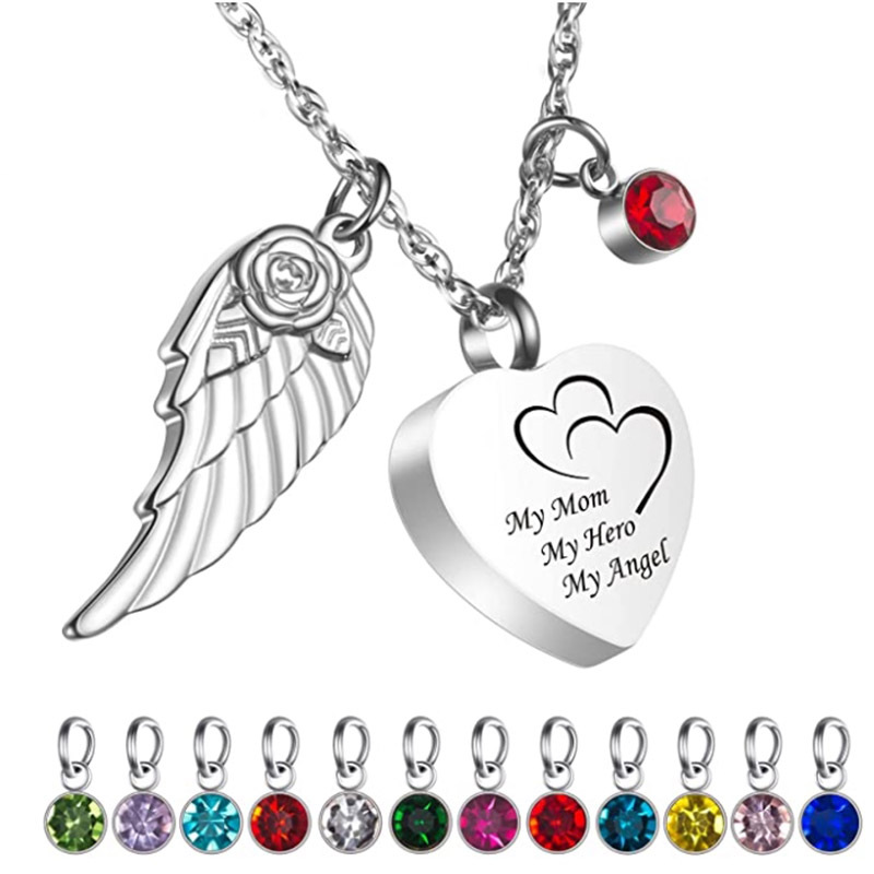速売通クロスボーダー記念家族ペット円柱翼付き誕生日石骨灰箱ネックレス香水瓶ペンダント